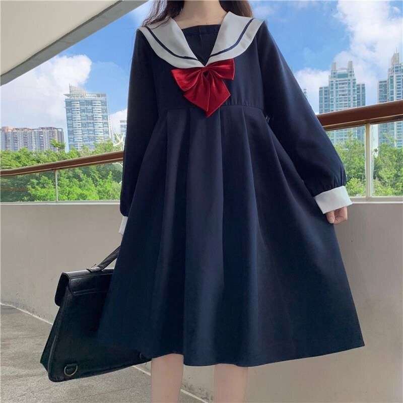 セーラー服 エレガント清楚なセーラー襟ワンピース