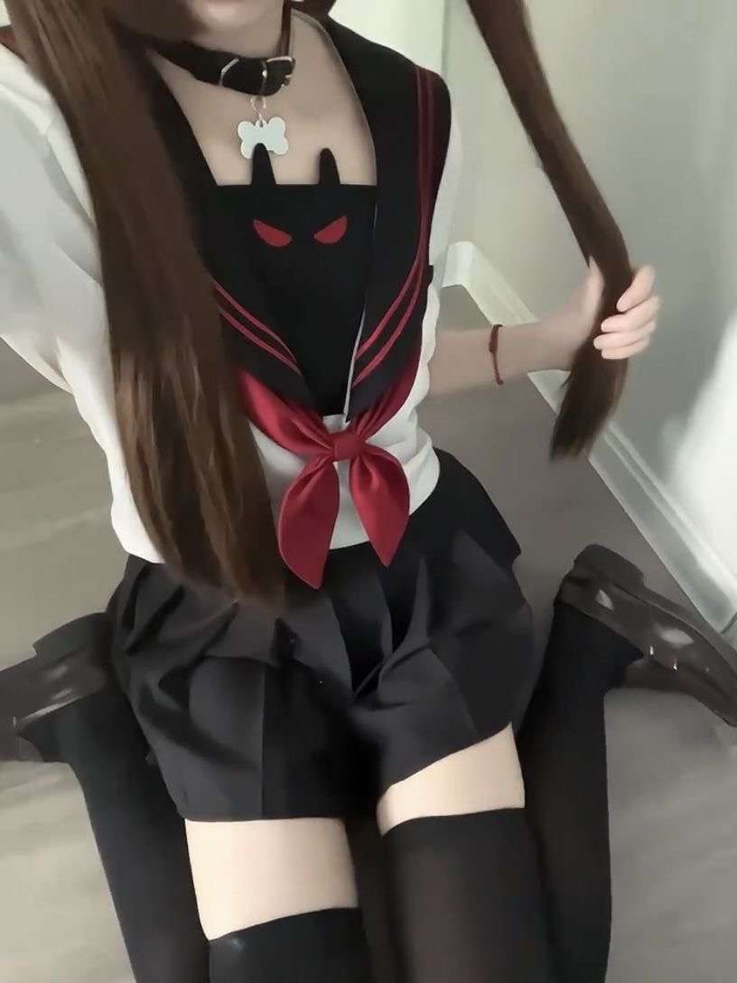 大人可愛い雰囲気の黒パンスト相性抜群セーラー服