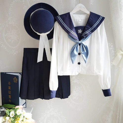 このセーラー服セットは、清楚で上品な雰囲気が特徴です。