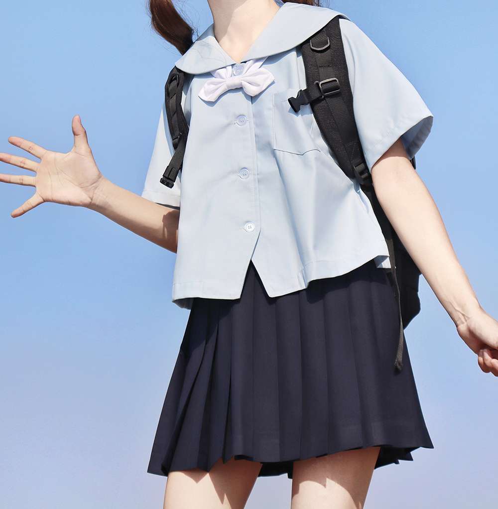 夏セーラー服らしい半袖デザインで、涼しげな印象を与えながらも季節感を取り入れたスタイリングが楽しめます。