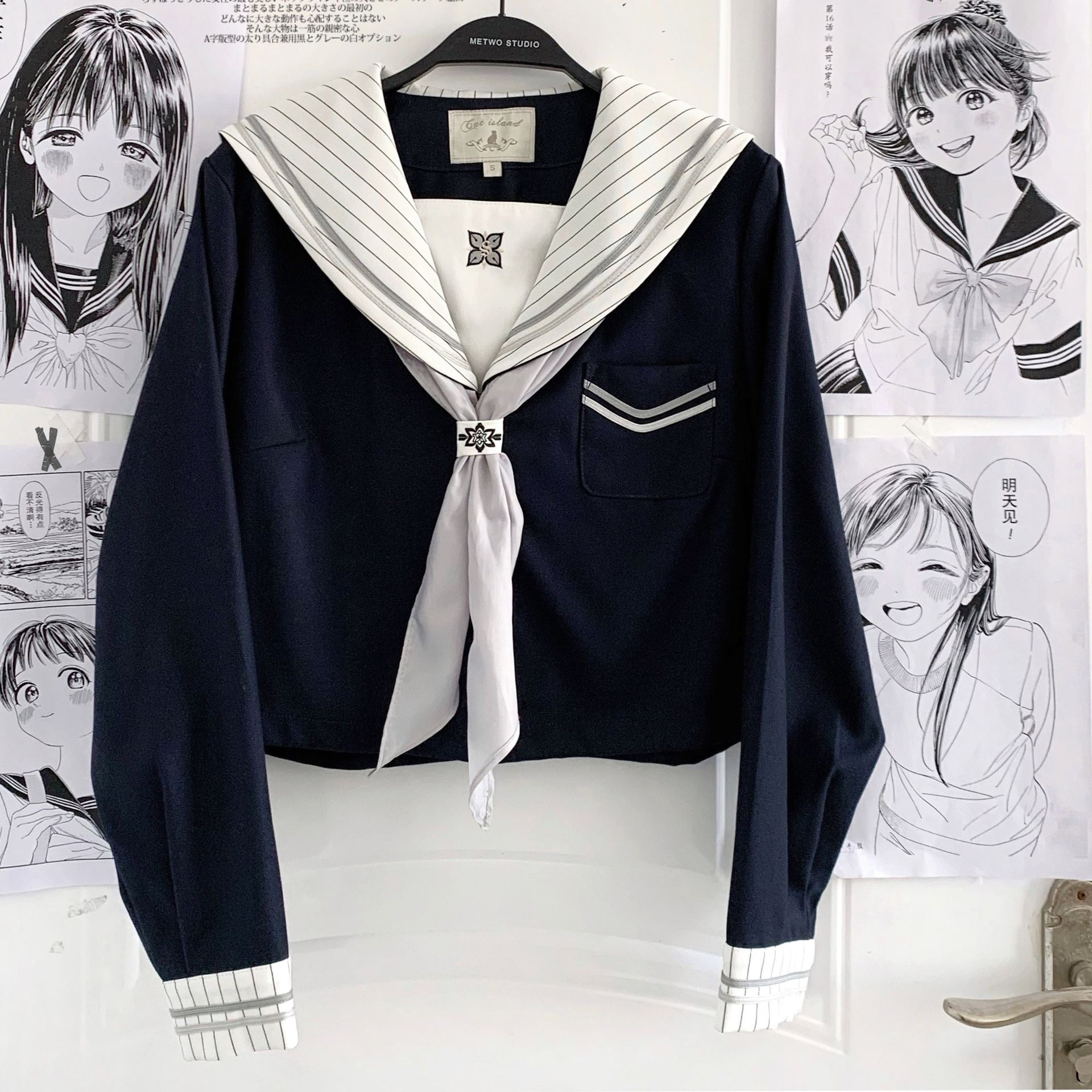 -10%清楚で可愛らしい印象の長袖セーラー服のコスプレ系衣装です。 襟元のストライプラインと胸元のワンポイント刺繍がアクセントになっています。 プリーツスカートは動きやすく美しいシルエットを演出します。 袖口のラインデザインも細部までこだわった本格仕様です。 コスプレ系イベントや撮影会はもちろん、日常使いにもおすすめの一着です。 セーラー服らしい清潔感と上品さを兼ね備えた人気の制服風デザインとなっています。