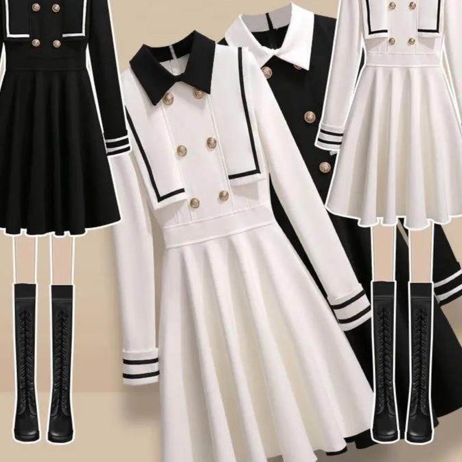 クラシカルな襟デザインとダブルボタンが特徴のセーラー服ワンピースです。 コスプレ系イベントや撮影会に最適な本格仕様で、袖口のラインがアクセントになっています。 フレアスカートが動きに合わせて優雅に広がり、学生風の清楚な雰囲気を演出します。 金属製のボタンとパイピングデザインが高級感を引き立て、普段使いからイベントまで幅広く活躍する一着です。