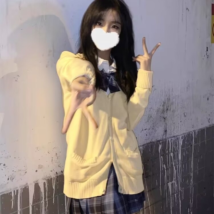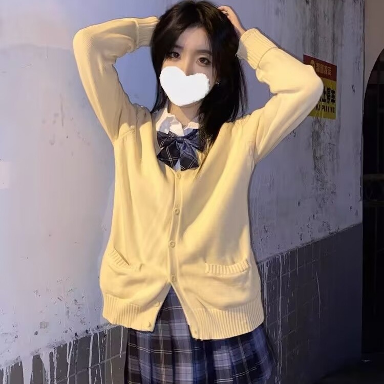 セーラー服との相性抜群のゆったりシルエットのセーターカーディガンです。