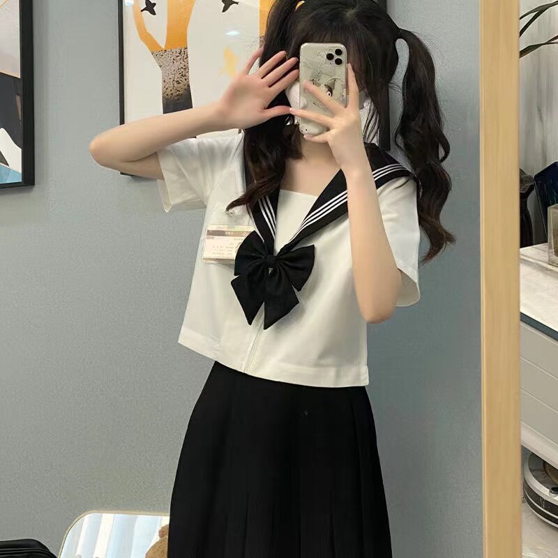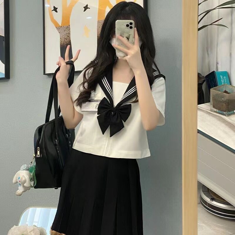 胸元の大きなリボンと襟のライン装飾が清楚で可愛らしい印象を演出します。