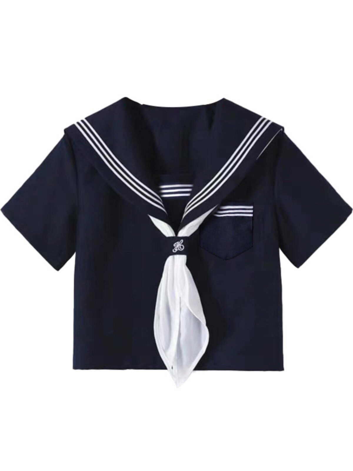 襟元のラインとスカーフがアクセントになった本格的なデザインで、学園気分を存分に楽しめます。
