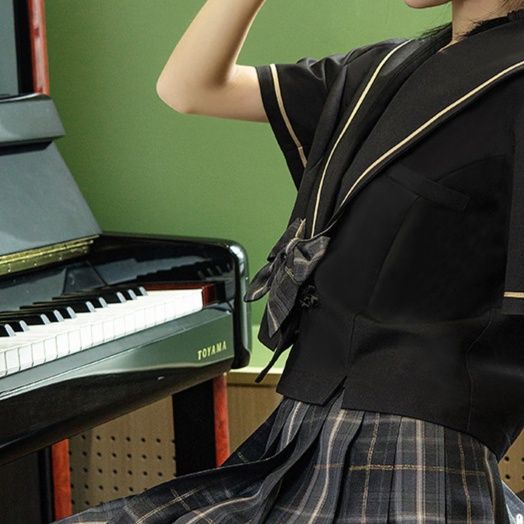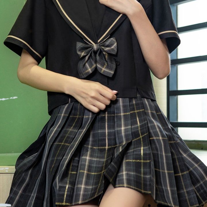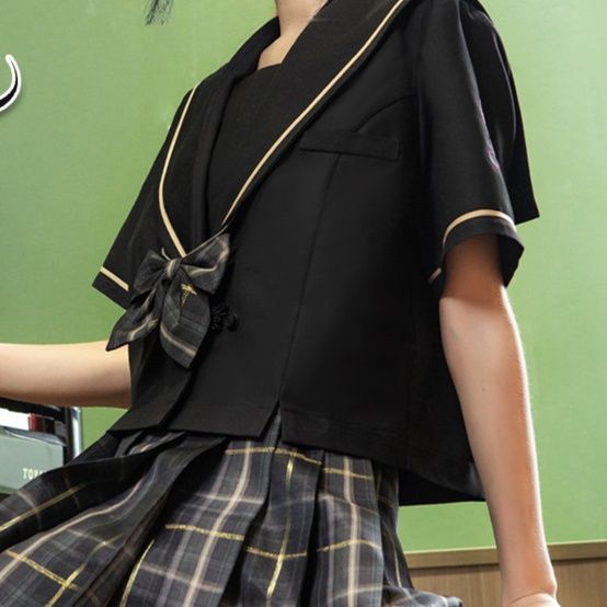 チェック柄のプリーツスカートとのセット商品で、学生風スタイルを完璧に再現できます。