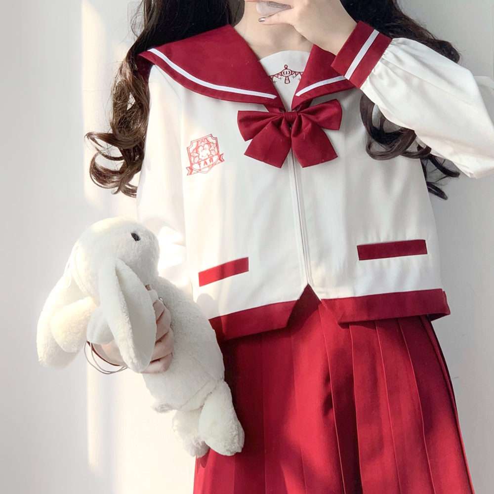 ・クラシックな学生服デザインの長袖セーラー服上下セット。